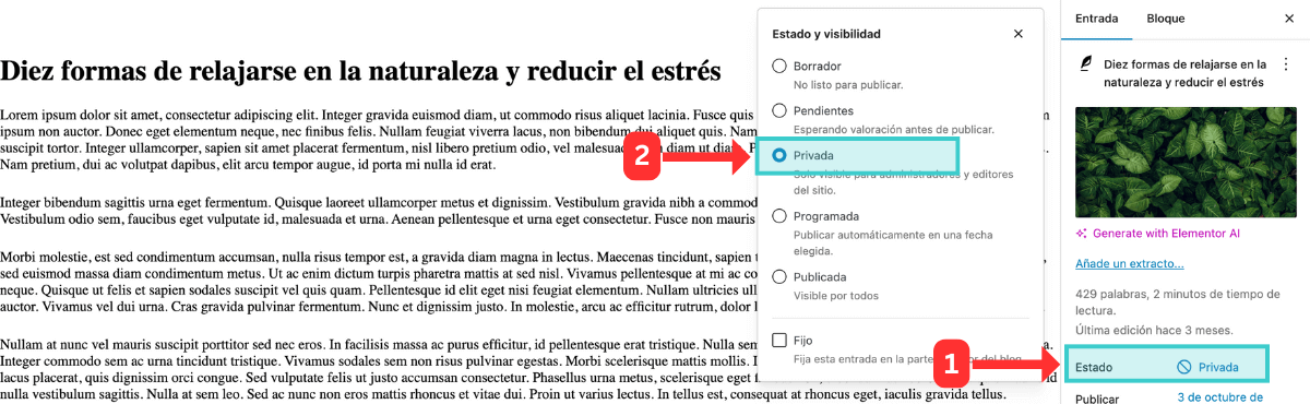 2. Los administradores pueden verlas y editarlas: Cualquier usuario con permisos de administrador o editor puede acceder a publicaciones privadas. Si manejas información altamente confidencial, esto podría suponer un riesgo.