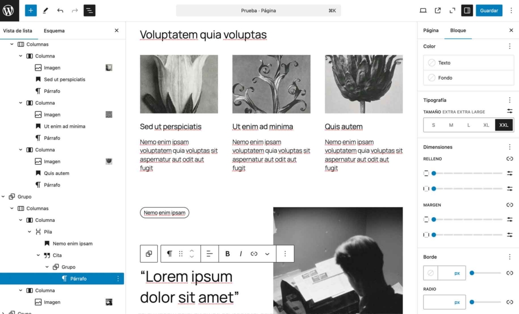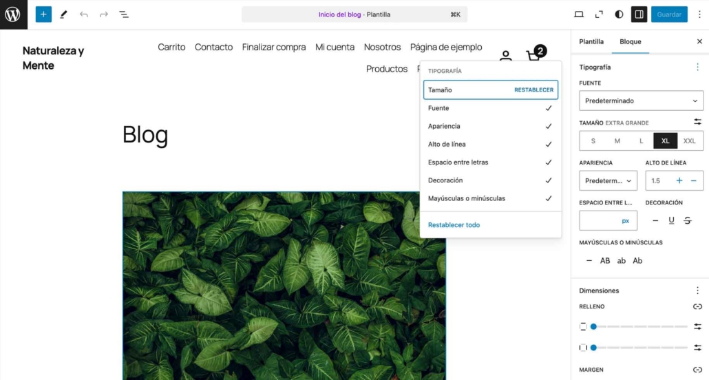 Crea estilos tipográficos personalizados (como un conjunto de fuente, tamaño, peso y color) y aplícalos a múltiples bloques con un solo clic. Esto no solo ahorra tiempo, sino que asegura un diseño coherente en todo el sitio.