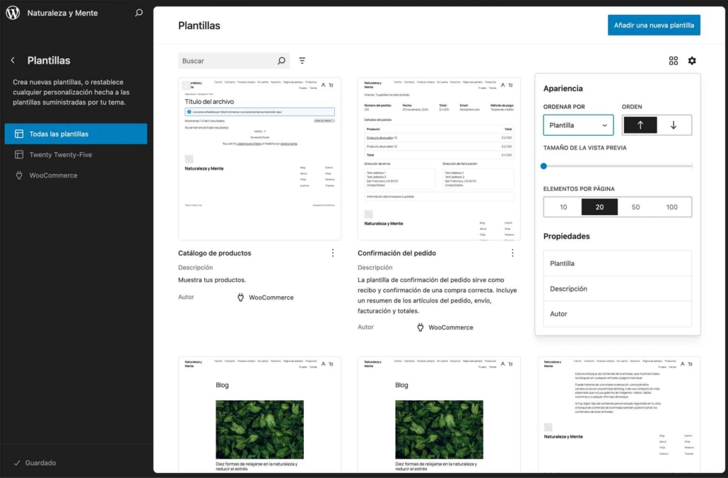 Aunque está pensado principalmente para blogs y noticias, Twenty Twenty-Five incluye soporte para WooCommerce, ofreciendo opciones básicas para gestionar productos y ventas en línea. Esto lo hace ideal para pequeños negocios que buscan un diseño limpio y funcional sin necesidad de instalar temas adicionales.