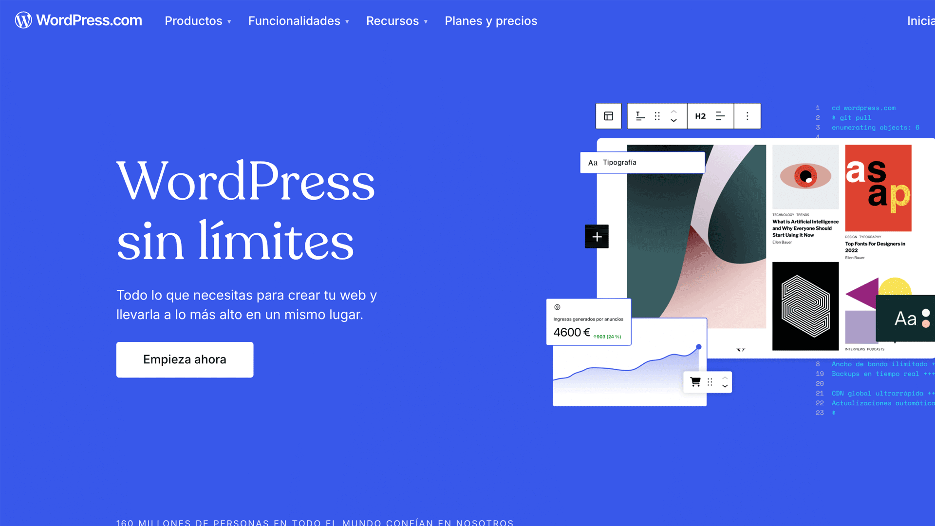 Originalmente concebido como una plataforma para blogs, con el tiempo ha evolucionado para convertirse en una herramienta importante para crear casi cualquier tipo de sitios web: desde blogs, hasta portafolios, tiendas en línea y sitios web corporativos.